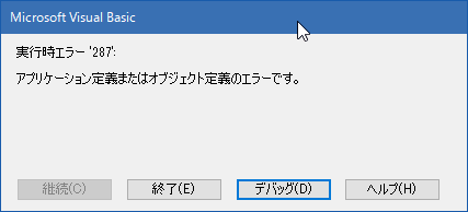 [許可]をクリックし続ければそのままプログラムは実行されるが、[拒否]をクリックすると"実行時エラー"となってプログラムが止まる。