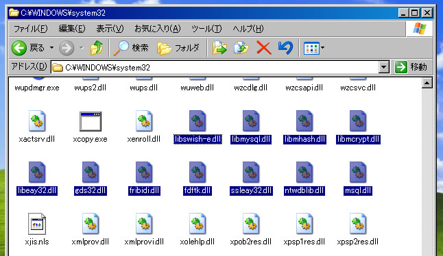 PHPフォルダ内のphp*.dll以外のDLLを"C:\Windows\system32"フォルダにコピーする。