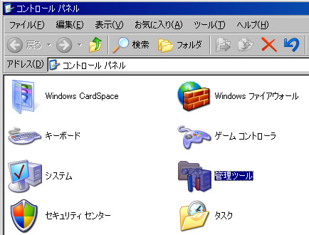 [コントロールパネル]を開き[管理ツール]をダブルクリックして[管理ツール]を開く。
