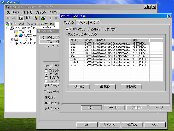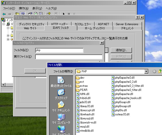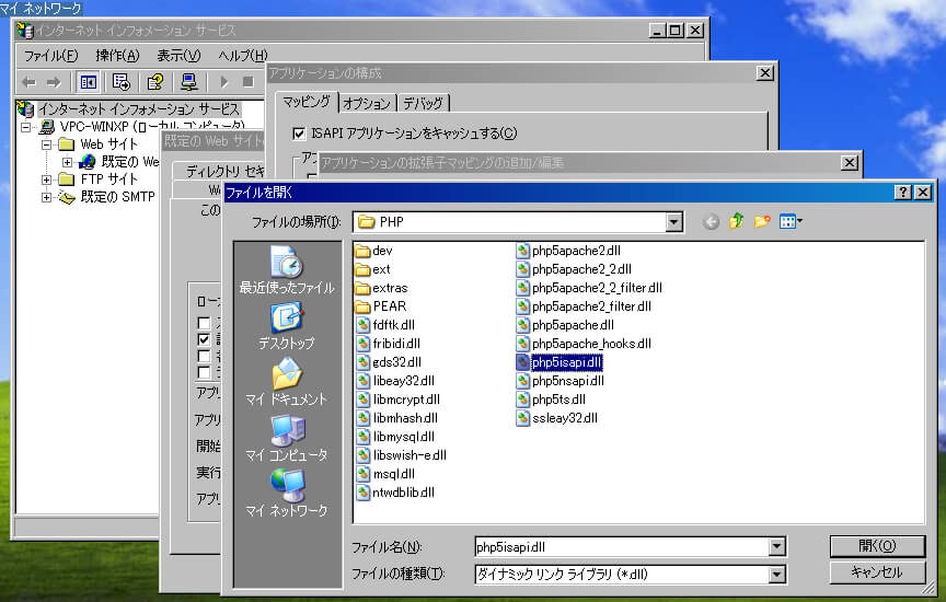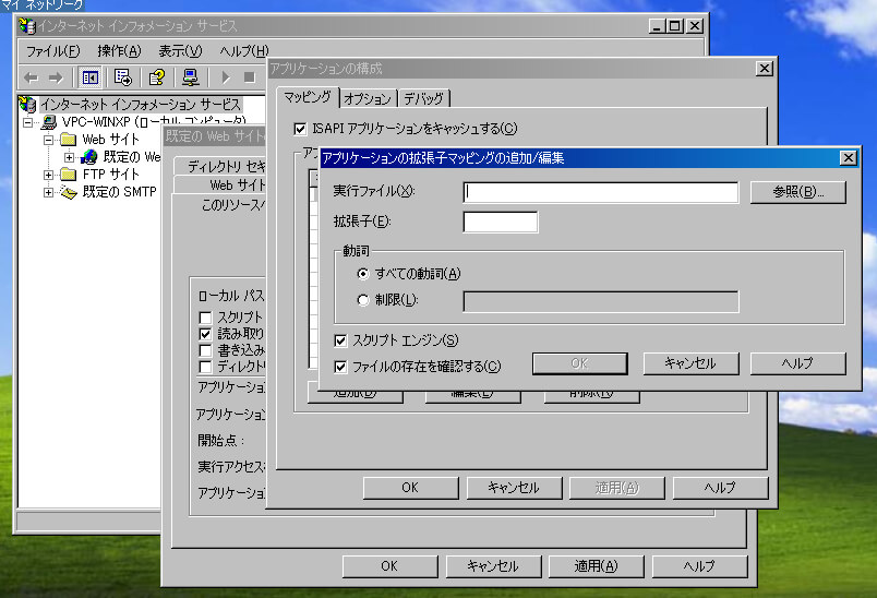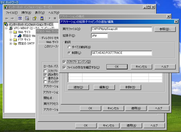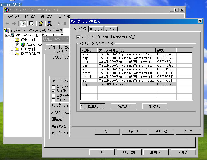 Windows XPでPHPを利用するためのIISの設定方法について覚書。