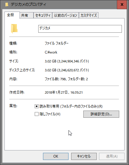 圧縮後は、439MBになっています。 ※50%のリサイズを行っていますのでリサイズ指定していない場合はもっとサイズは大きくなります。