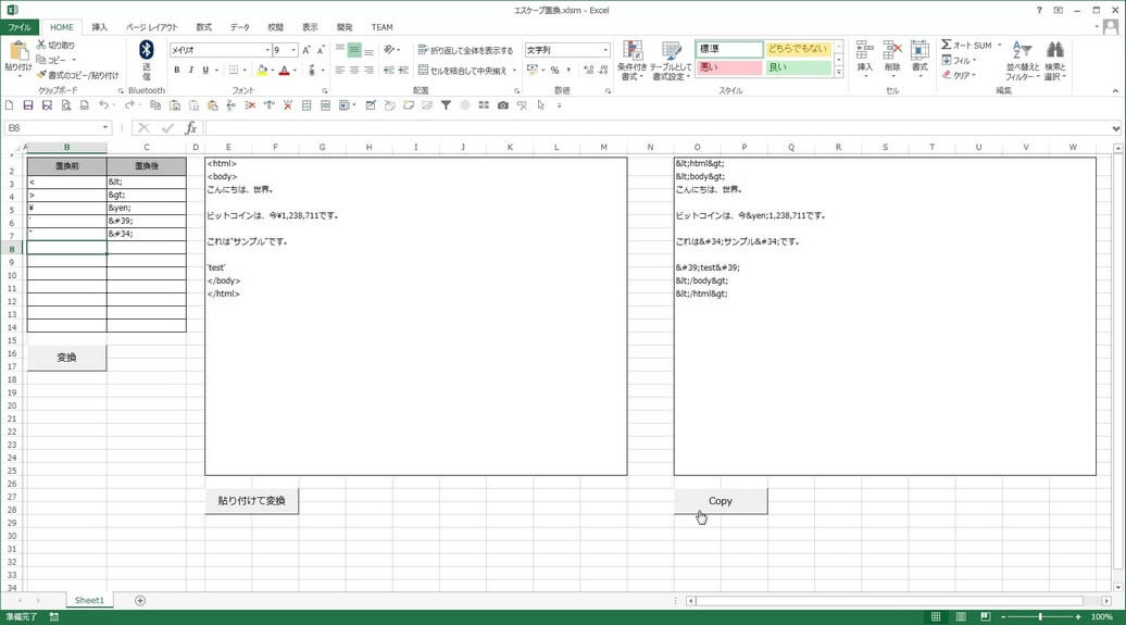 指定したhtmlの特殊文字だけ一発で変換できてクリップボードに転送するツールをExcelのVBAで作成(ダウンロード可)
