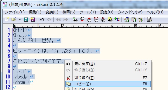 変換したい文字列(文章とかプログラムコードとか)をコピーする。