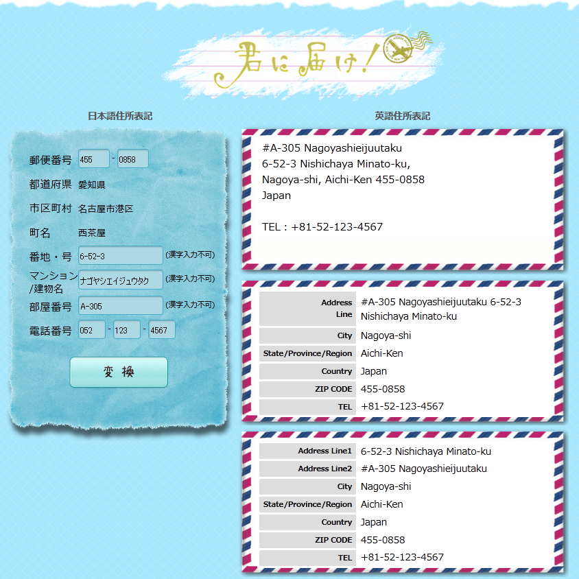 住所を英語表記に簡単変換 - 君に届け!