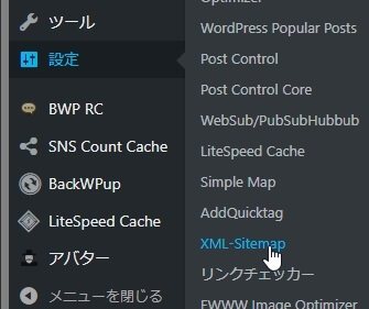 WordPressのダッシュボード画面の左メニューから、[設定] > [XML-Sitemap]をクリックして、Google XML Sitemaps プラグインの設定画面を開きます。