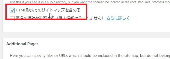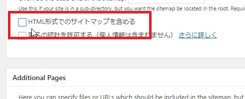 設定画面にある[HTML形式でのサイトマップを含める]をオフにして[設定を更新]ボタンをクリックして設定を保存します。