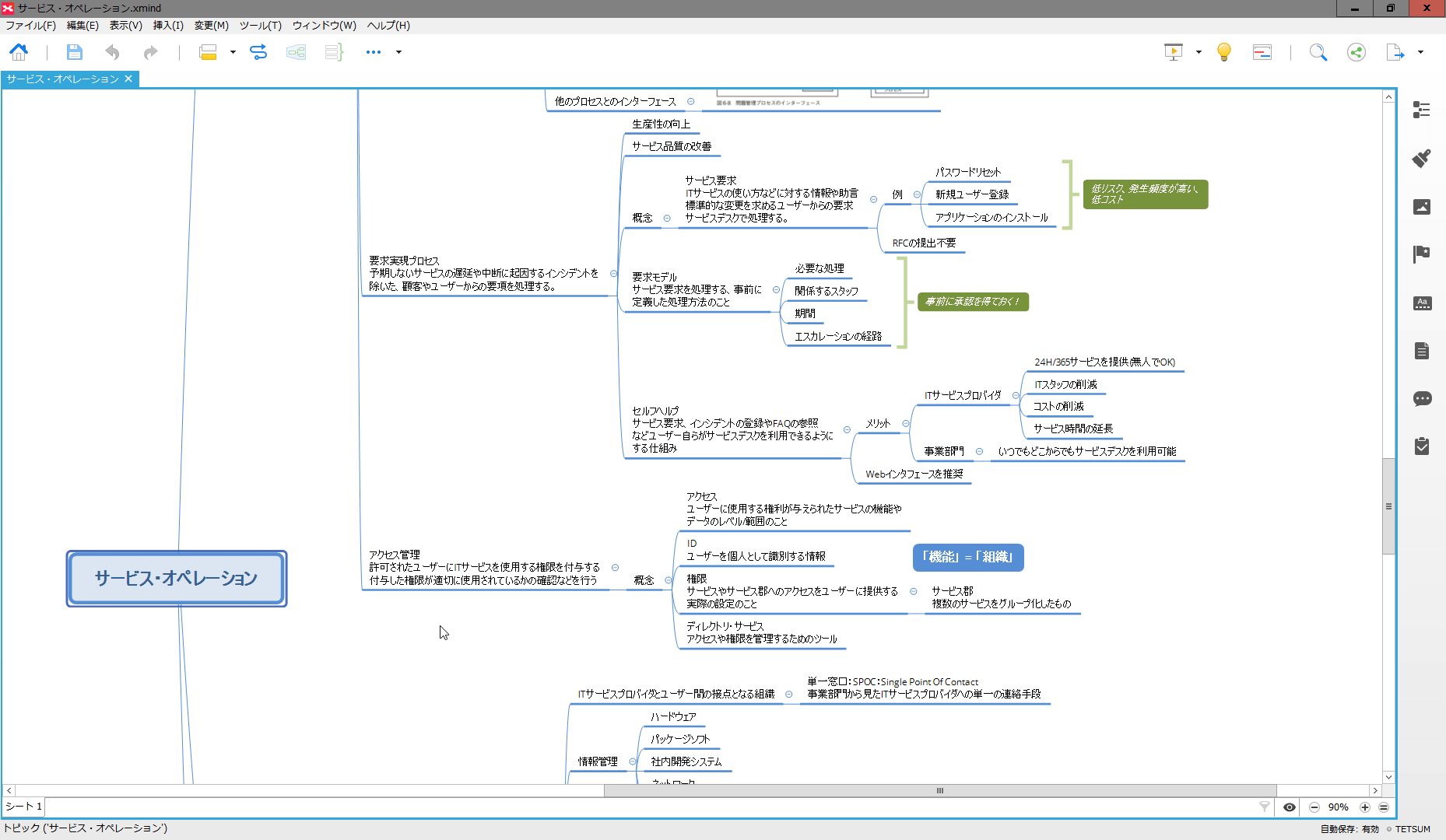 例えば、「IT運用管理」という用語がありますが、"「IT運用管理」プロセスは、ITILコア書籍の「サービス・オペレーション」の「機能」の1つであり、「IT運用管理」の活動には、「IT運用コントロール」と「施設管理」がある”、といった具合に階層的に覚えている必要があります。