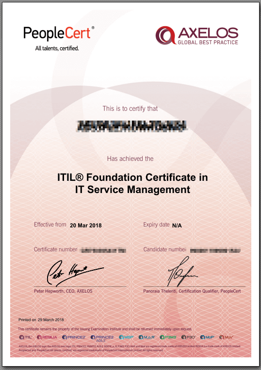 ITIL Foundationは、ITILの基本的な部分、特に用語と用語の定義に関する部分が中心となるので難易度は低いと思います。