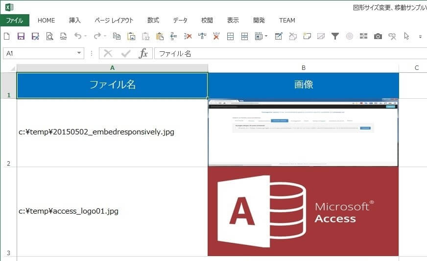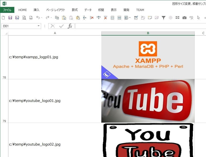 画像それぞれの左セルにはその画像のファイル名(フルパス)を入力します。