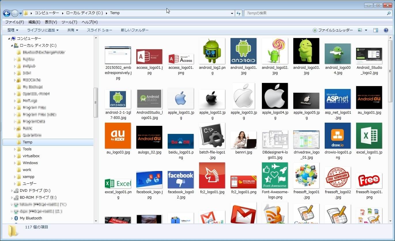 以下のようにC:\TEMPフォルダに複数の画像が保存されています。