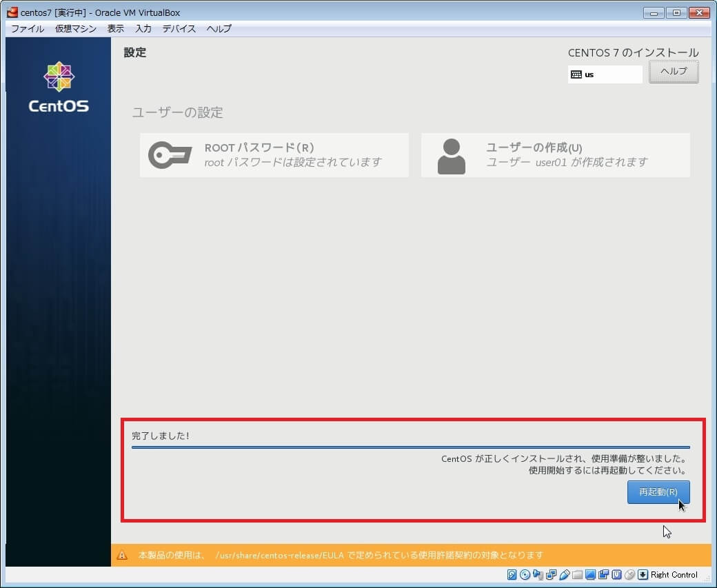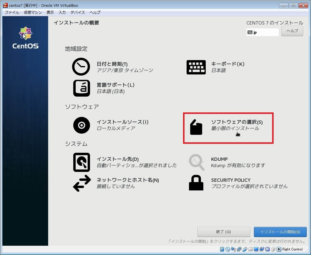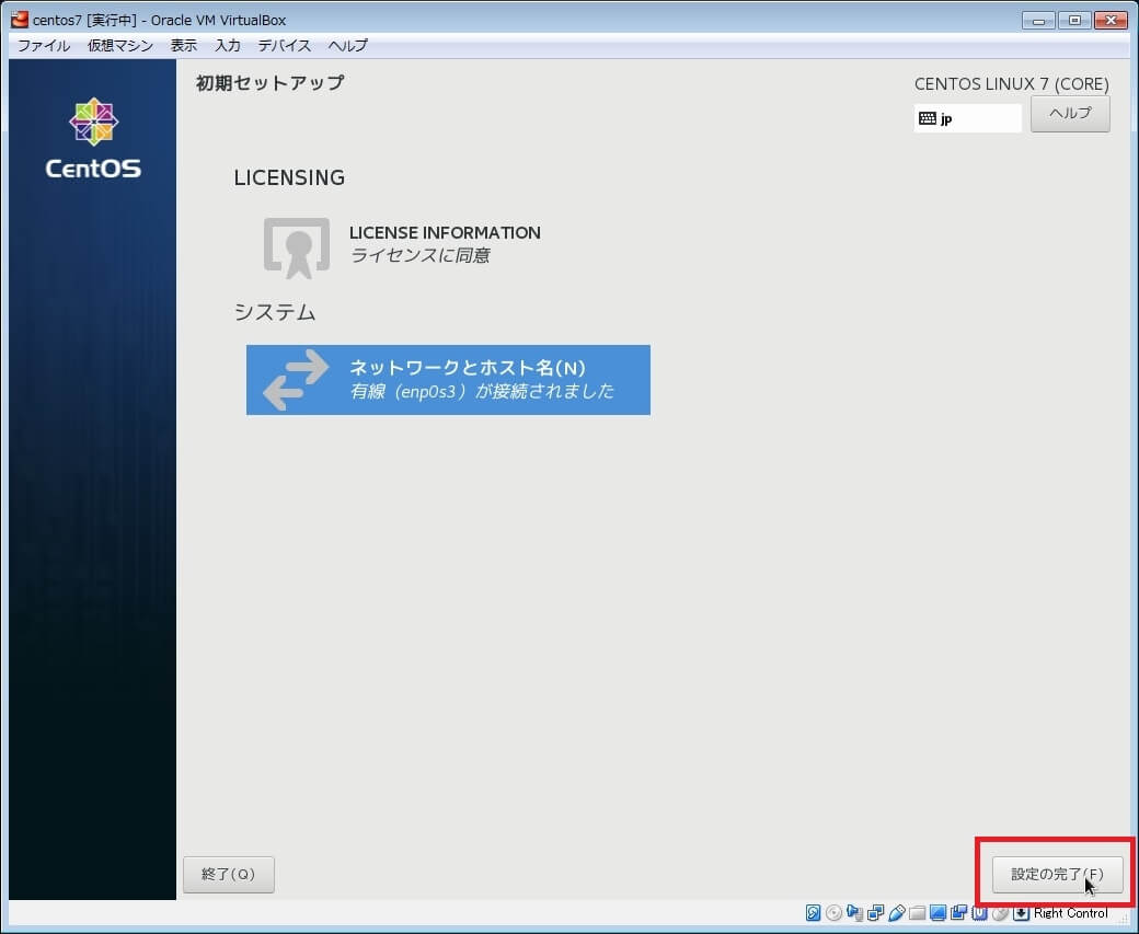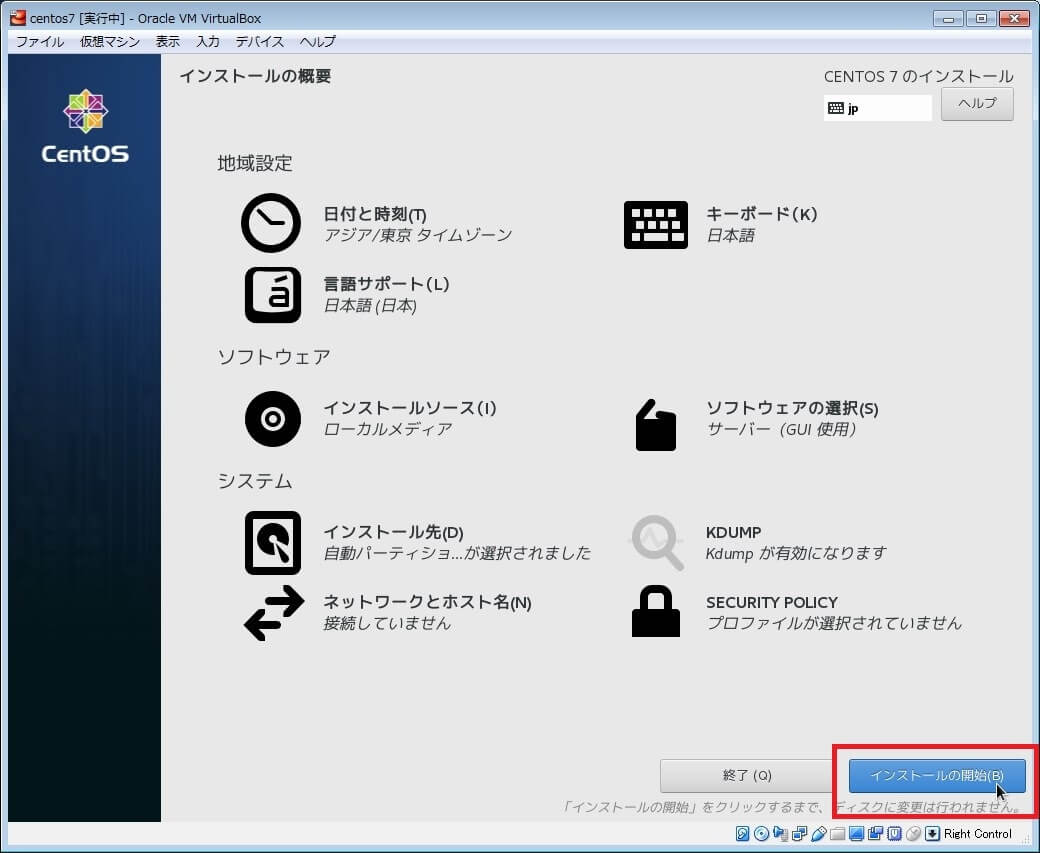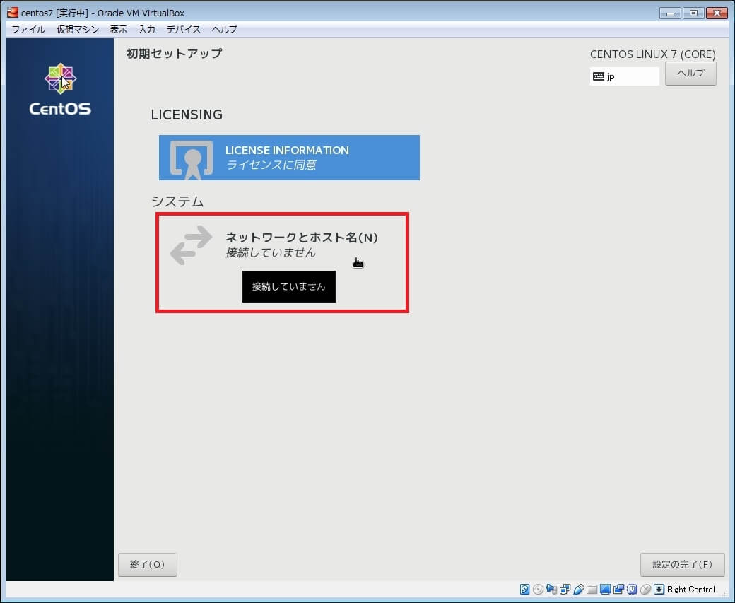 とりあえず、以上でVirtualBoxを使って仮想マシンとしてCentOSをインストールする手順は完了です。
