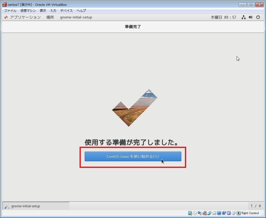 [準備完了]画面が表示されるので、[CentOS Linux を使い始める]をクリックします。