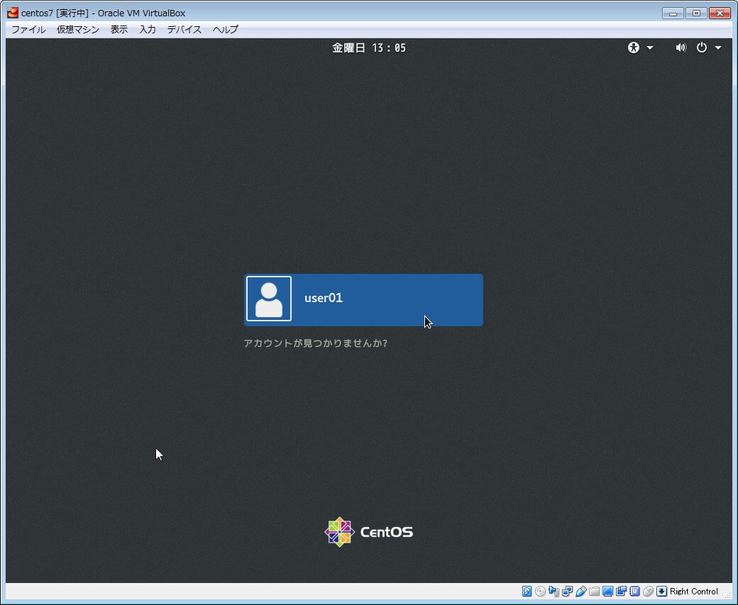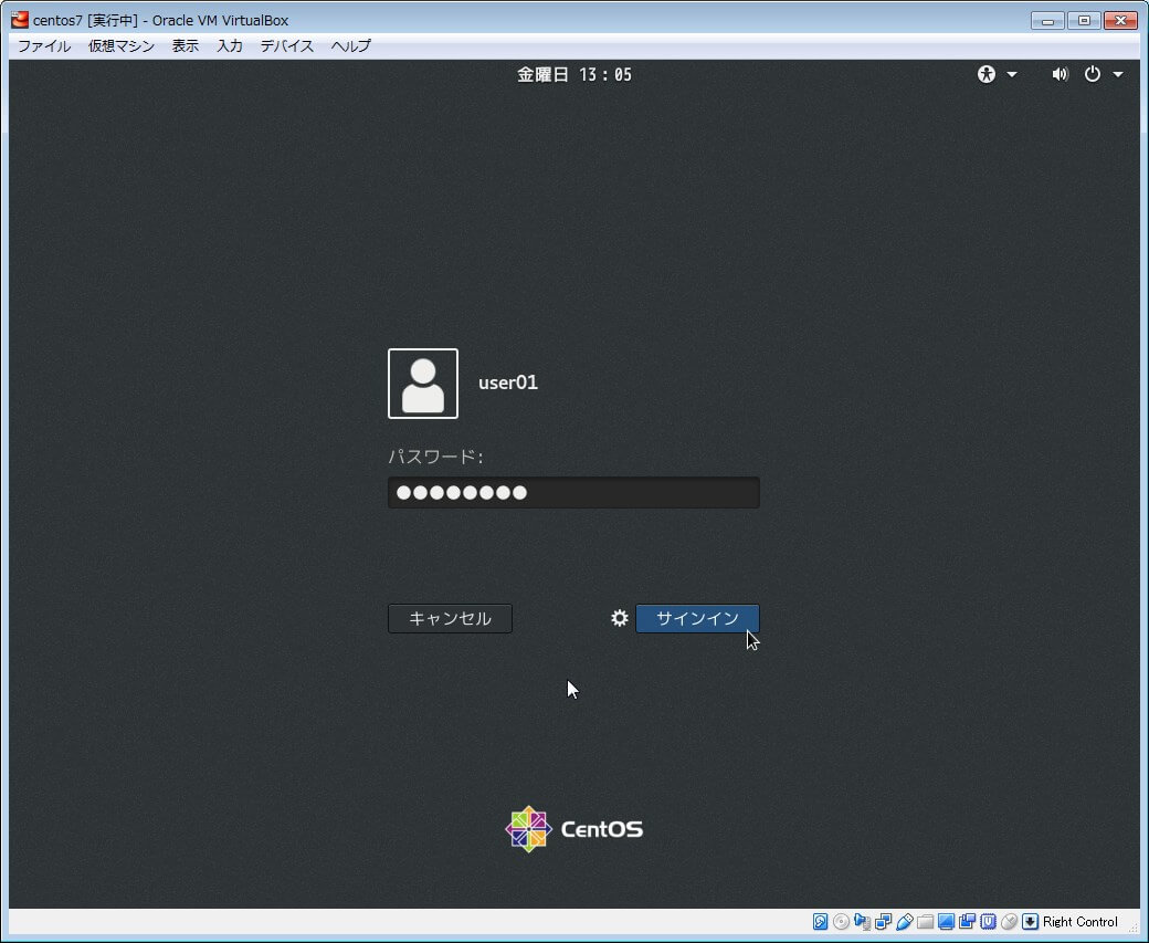 パスワードの入力を求められるので、user01のパスワードを入力し[サインイン]をクリックしてCentOSにログインします。
