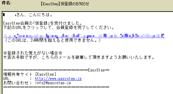 以下のような仮登録メールが届くので、本文中のURLをクリックする。