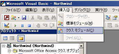 貼り付けたら[ファイル]メニューの[XXXの上書き保存](XXXは、データベース名)をクリックし、クラスモジュールを保存する。