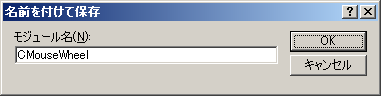 この際以下のようなクラスモジュール名を入力する[名前を付けて保存]ダイアログボックスが表示されるので「CMouseWheel」と入力して[OK]ボタンをクリックする。