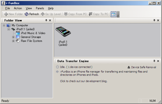 「i-FunBox(iFunBox)」は、jailbreak(脱獄)しなくてもiPod touch/iPhoneとのUSB接続経由でのファイル転送を可能にしてくれるフリーソフト。
