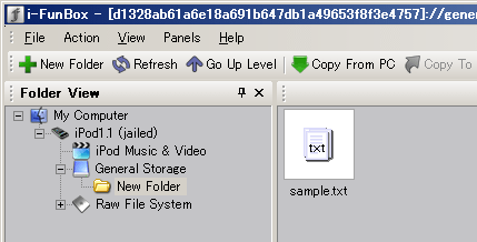 「i-FunBox(iFunBox)」を使えば、他のiPodではできていたリムーバブルハードディスク(USBメモリ)のようにUSB経由でのファイルのやり取りが可能になる。