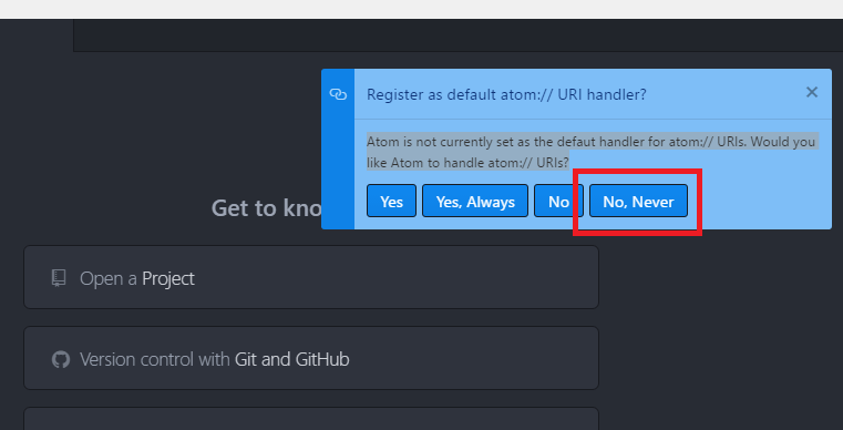 「Atom is not currently set as the default handler for atom:URIs.World you