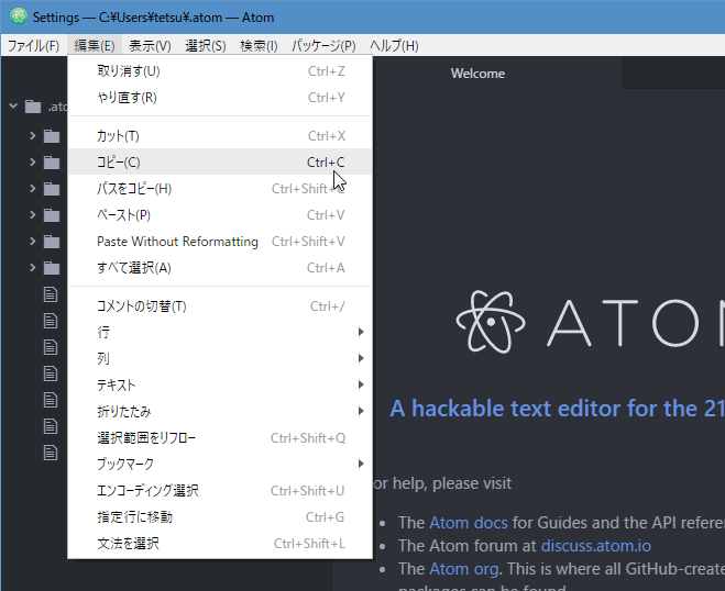 ATOMの日本語化がうまくいかないときに手作業で日本語化する手順も記載しています。