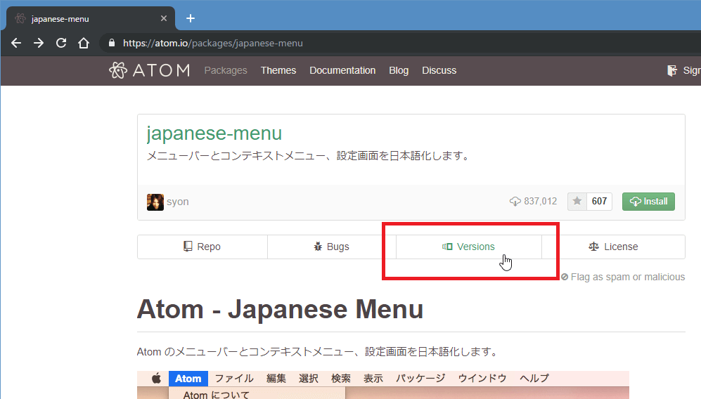 以下のリンクをクリックして日本語化パッケージ「japanese-menu」サイトを開きます。