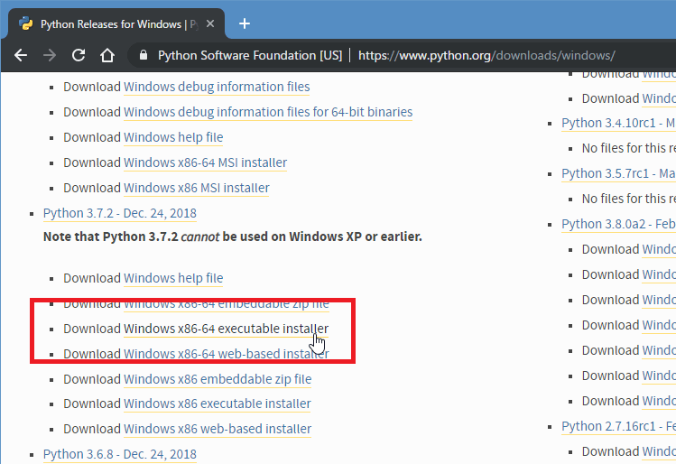 pythonのインストールイメージをダウンロードしますので以下のリンクをクリックして、pythonのWebサイトを開きます。