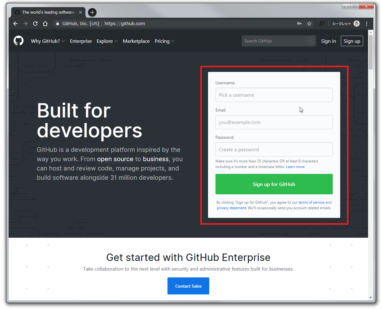 GitHubにアカウントの作成