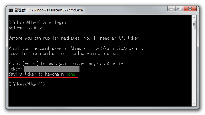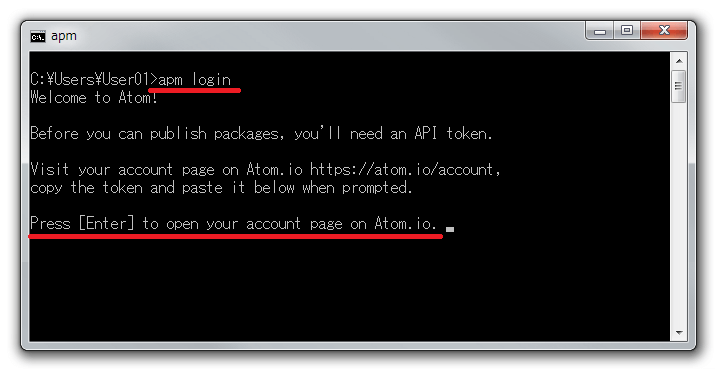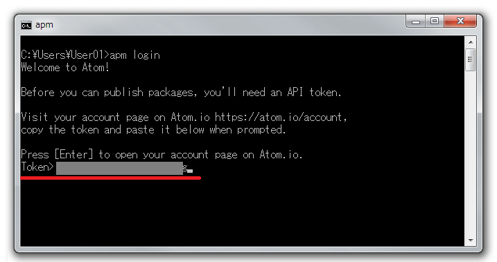 C:\Users\ユーザー名\AppData\Local\atom\bin\apm login
