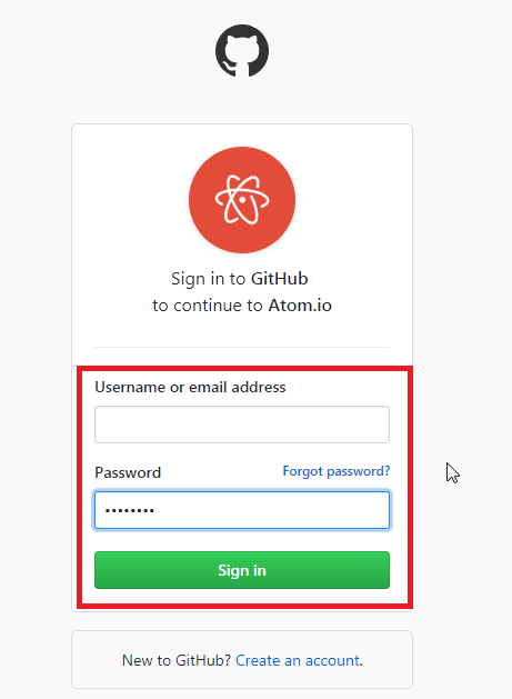 「Press [Enter] to open your account page on Atom.io.」