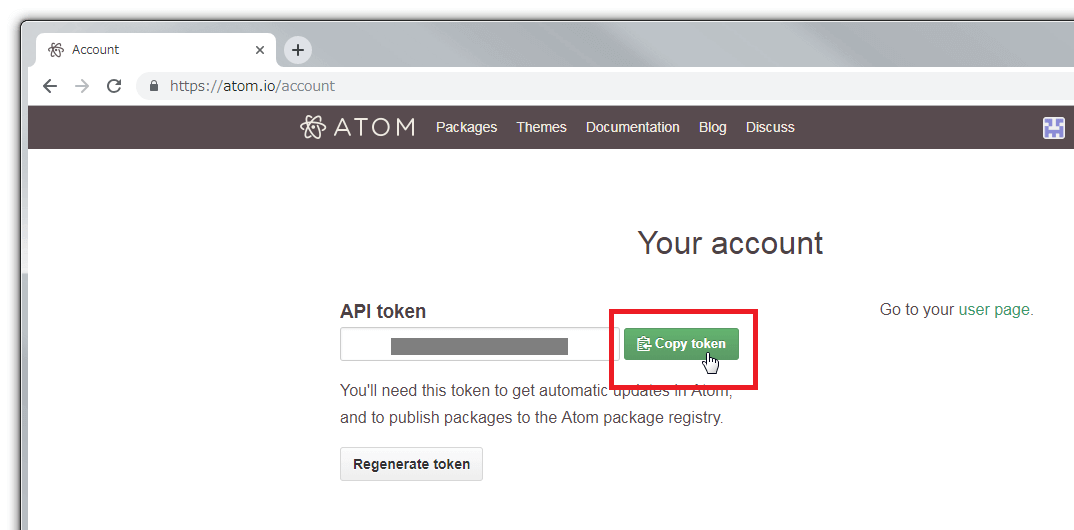 "API token"が表示されるので、[Copy token]をクリックします。