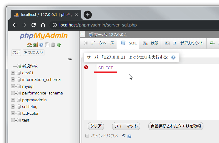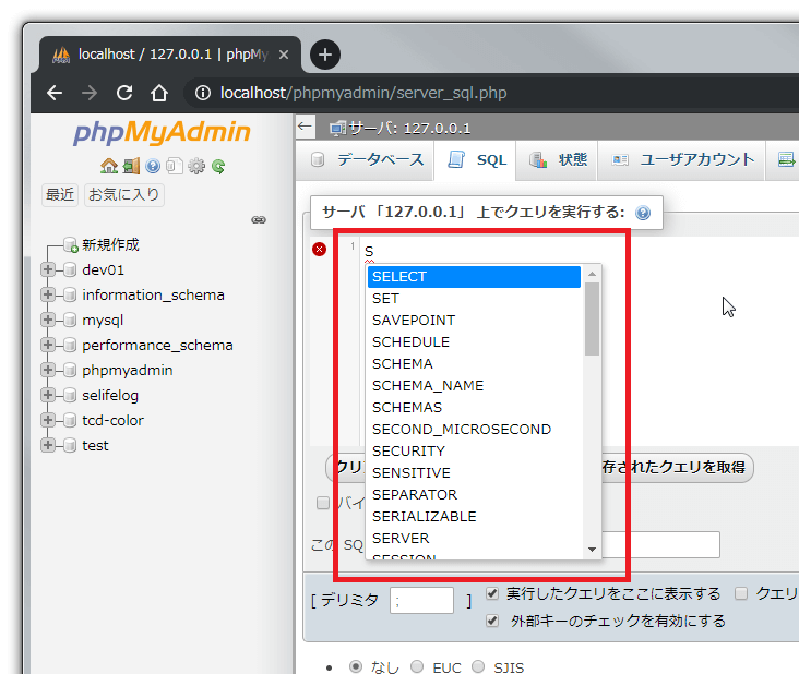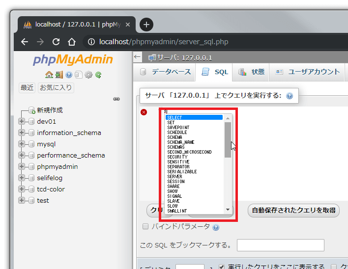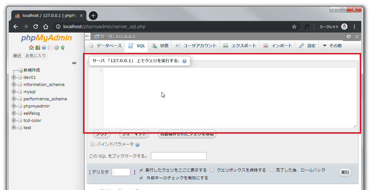 変更するのはphpMyAdminの以下の[SQLクエリボックス]画面。