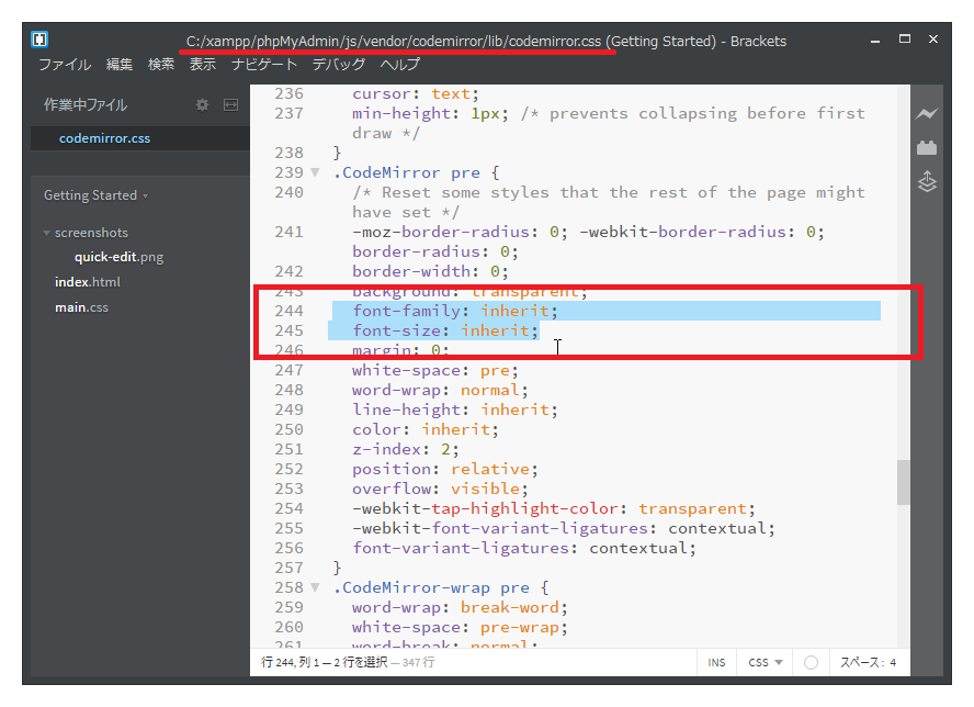 ここのフォントを変更するには、phpMyAdminをインストールした以下のディレクトリにあるcssファイル(スタイルシート)を直接編集します。