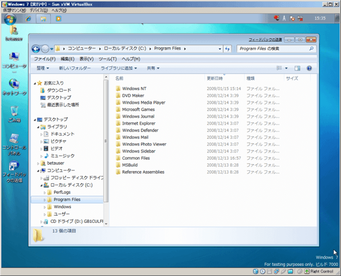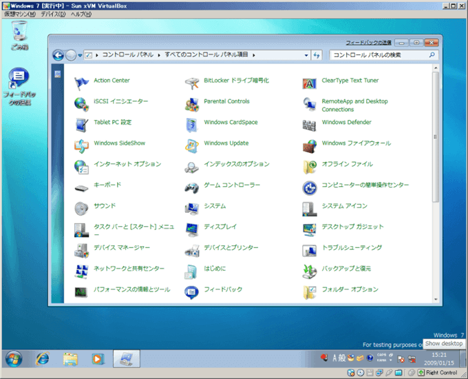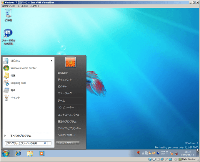 Microsoft Windows 7の日本語ベータ版がダウンロードできるようになったのでVirtualBox(仮想PC作成、実行ソフト)にセットアップしてみた感想です。