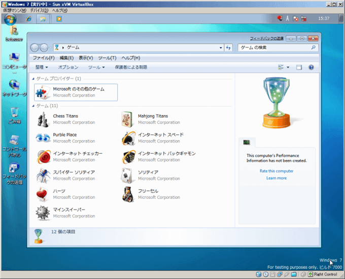 メモリ512MBで仮想PCのためCPUを占有できないという環境ながら、OSの動作自体はとても軽快でサクサク動作する。