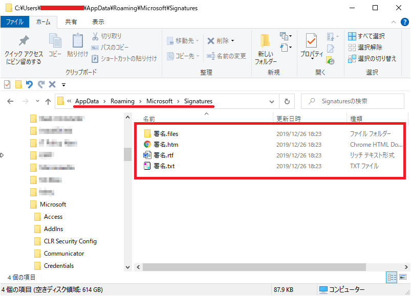C:\Users\ユーザー名\AppData\Roaming\Microsoft\Signatures