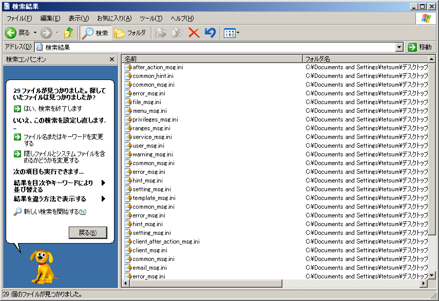 解凍した"ja"フォルダから拡張子が"ini"のファイルだけをWindowsのファイル検索機能などで抽出する。