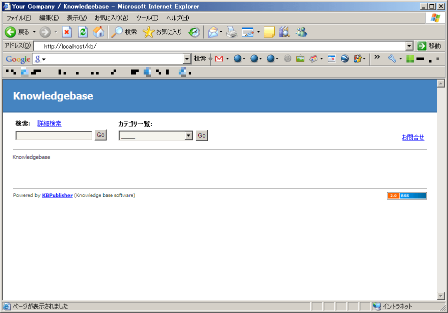 「KBPublisher」のホーム画面を開いて日本語化されていることを確認する。