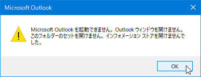 Outlookだと「Microsoft Outlookを起動できません。Outlookウィンドウを開けません。このフォルダーのセットを開けません。インフォメーションストアを開けませんでした。」などのメッセージが表示され起動することができません。