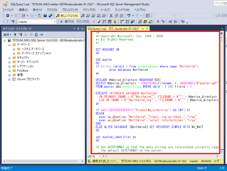 Microsoftの公式サンプルデータベース「Northwind」をSQL Serverに作成する方法を紹介しました。