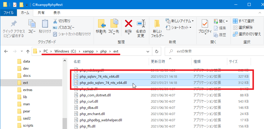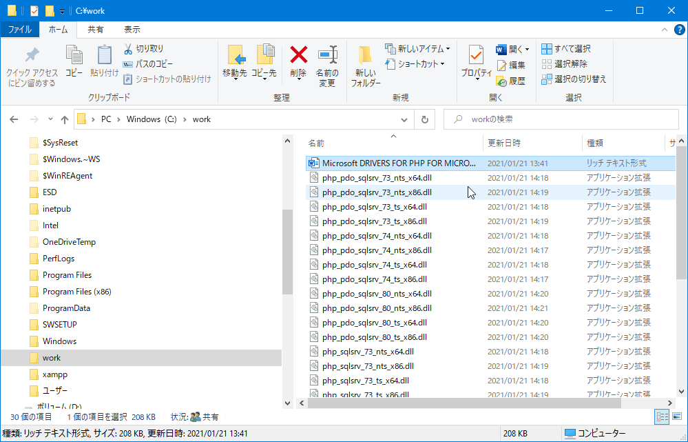 - SQL Server関連のPHPの拡張モジュールのダウンロードとコピー