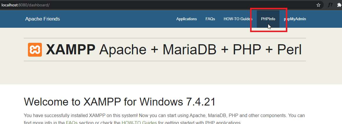 XAMPPを使っている場合は、[PHPInfo]をクリックすれば表示されます。