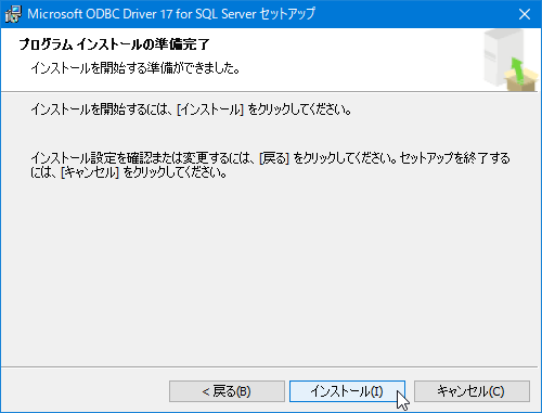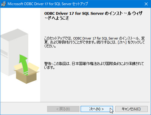 [Microsoft ODBC Driver 17 for SQL Serverセットアップ]ウィザードが開始されますので[次へ]をクリックします。
