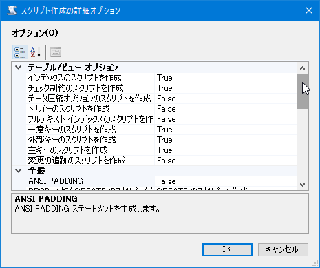 [スクリプト作成の詳細オプション]画面の[OK]ボタンをクリックし、[スクリプト作成オプションの設定]画面に戻ります。