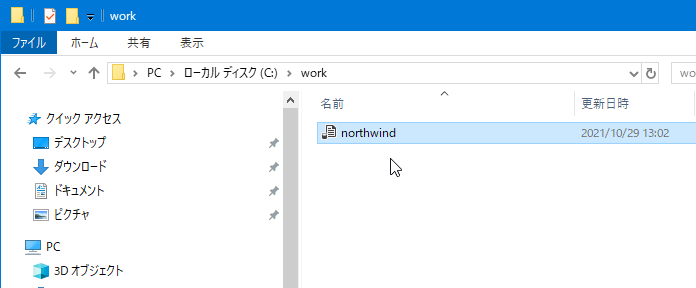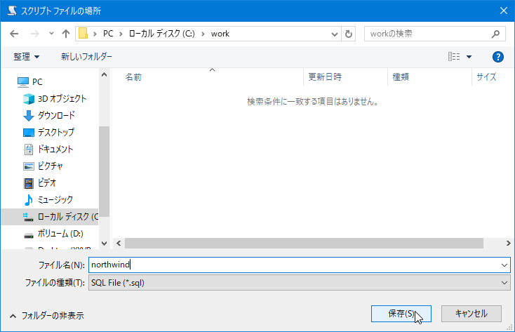 ここでは、例として"northwind.sql"というファイル名で保存します。