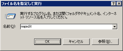 [ファイル名を指定して実行]ダイアログボックスが表示されるので、[名前]ボックスに"regedit"と入力して[OK]をクリック。