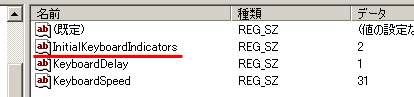 画面右側のキーの一覧から[InitialKeyboardIndicators]をダブルクリック。