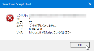 VBScript実行時に「終了していない文字列型の定数です。」や「文字が正しくありません。」というMicrosoft VBScript コンパイル エラーが発生した際の原因と対処方法について覚書。