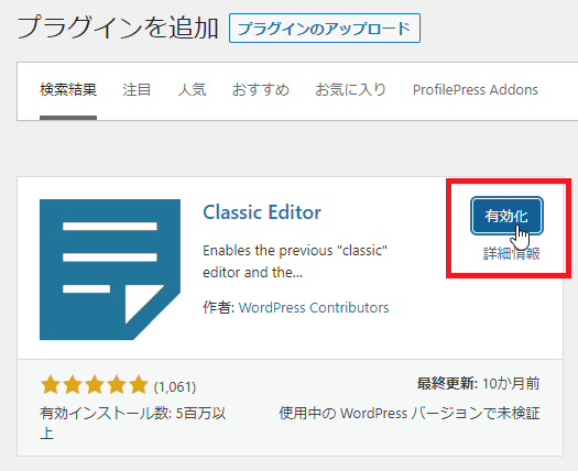 旧エディター(Classic Editor)プラグインのインストール