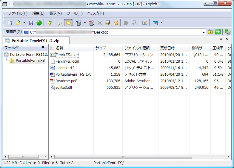 「Explzh」エクスプローラー風の圧縮・解凍ソフト