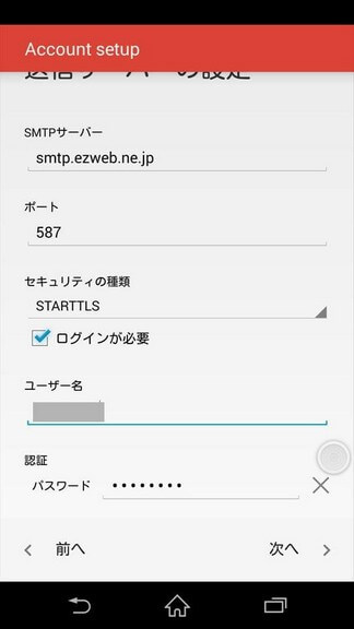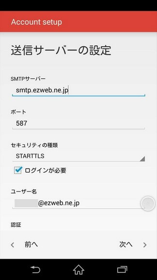 SMTPサーバー:smtp.ezweb.ne.jp